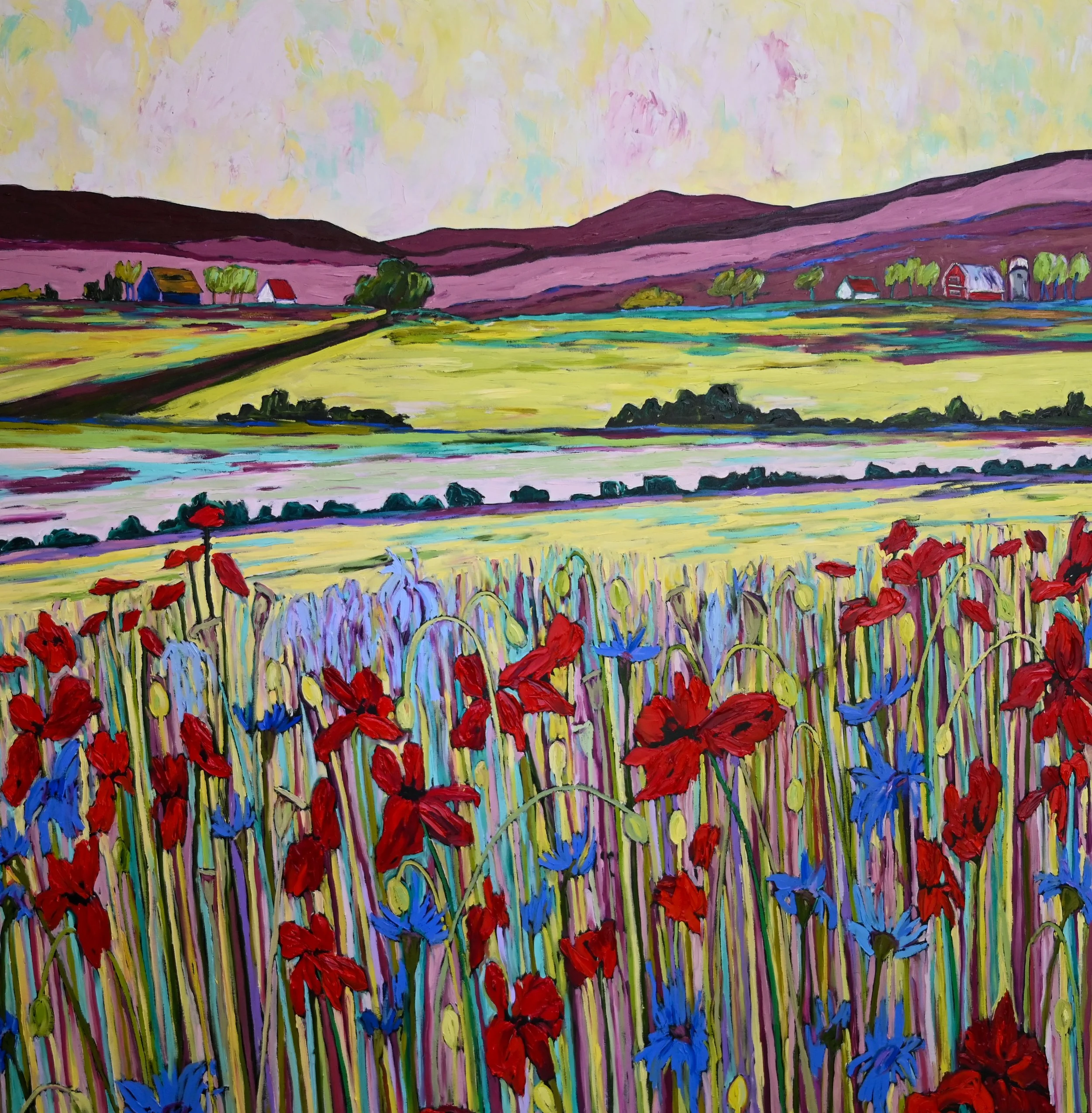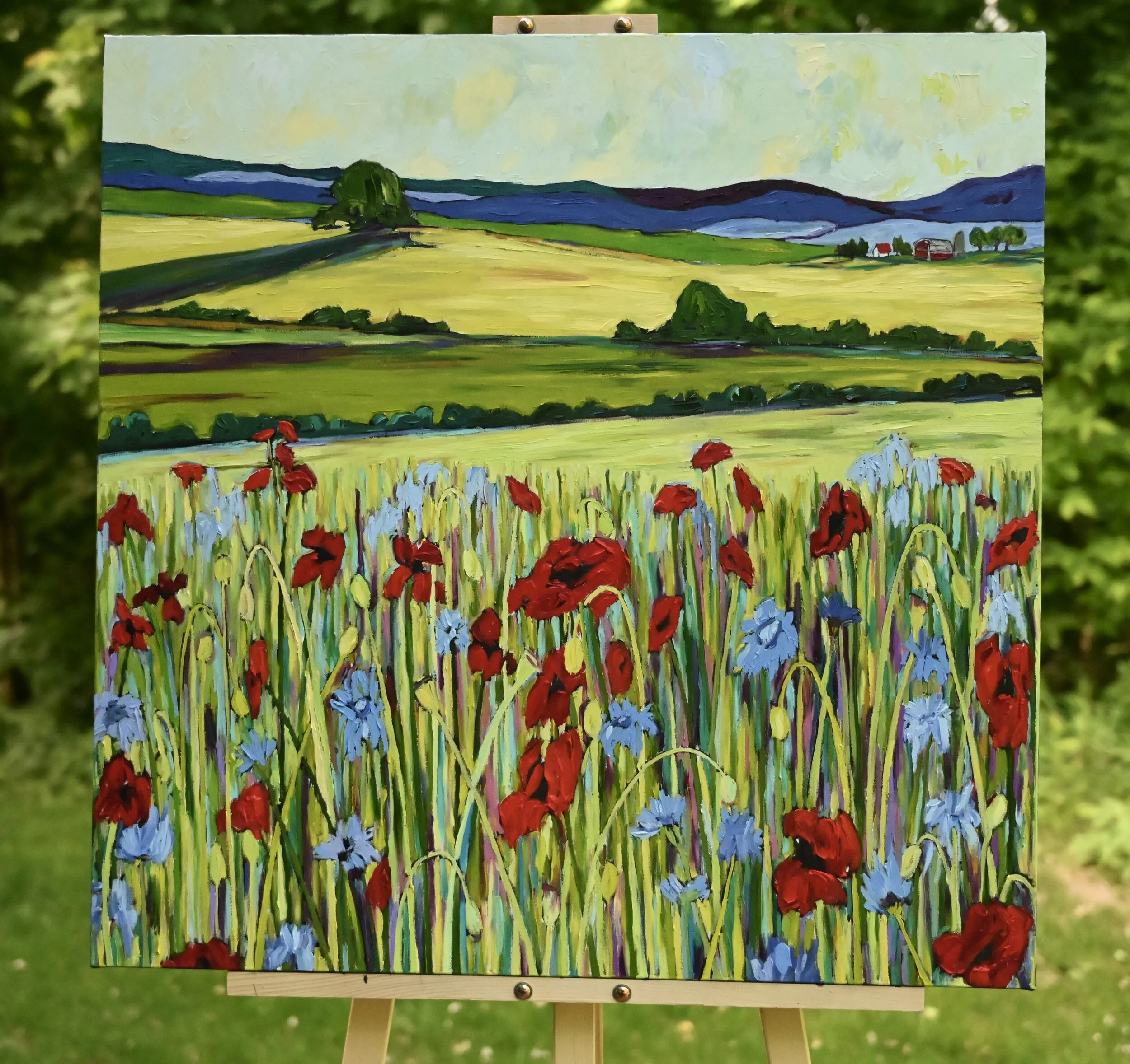 “Cornflower and Poppy Meadow in the Hills” Oil on Canvas 30”h x 30”w